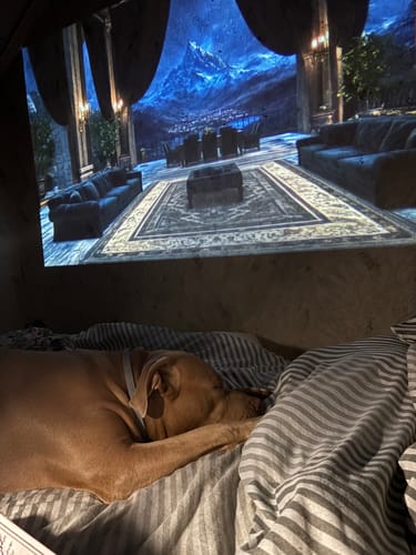 For cinematic volume or big rooms, we recommend pairing with a Bluetooth speaker for a fuller sound