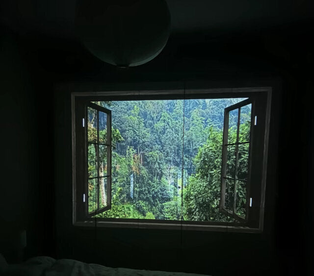 The projector’s internal speaker is suitable for quiet environments, perfect for reading sessions or cosy rainy-night ambience.